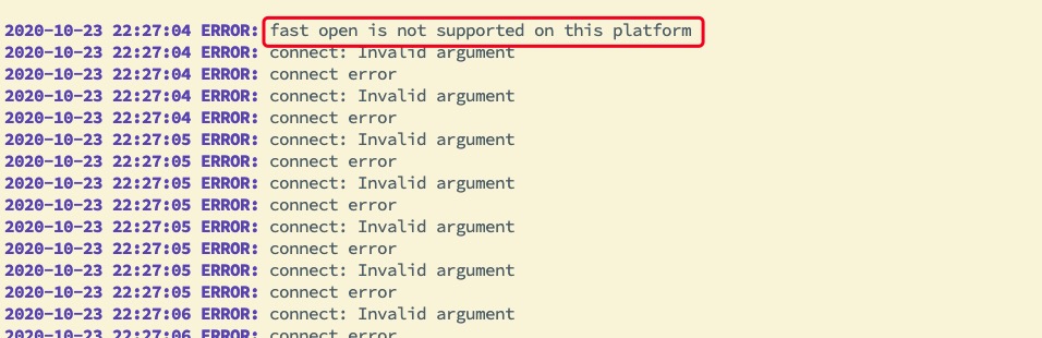 1 2020-10-23 22:27:04 ERROR: fast open is not supported on this platform