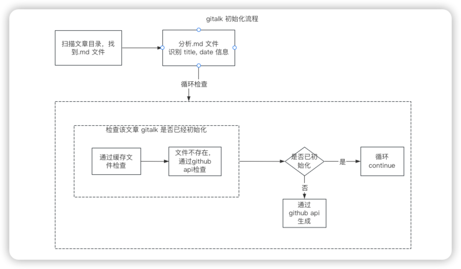 return this.gitalkIdGenerator(pathname, title, desc, date) }, async start(postDir) { const posts = await this.readPosts(postDir); const errorData = []; const initializedData = []; const successData = []; for (const item of posts) { const {pathname, title, desc, date} = item; const id = this.getGitalkId(pathname, title, desc, date); const [err, res] = await this.idIsInit(id); if (err) { console.log(`Error: 查询评论异常 [ ${title} ] , 信息:`, err || '无'); errorData.push({ ...item, info: '查询评论异常', }); continue; } if (res === true) { console.log(`--- Gitalk 已经初始化 --- [ ${title} ] `); initializedData.push({id}); continue; } console.log(`Gitalk 初始化开始... [ ${title} ] `); const [e, r] = await this.gitalkInitInvoke({ id, pathname, title, desc }); if (e || !r) { console.log(`Error: Gitalk 初始化异常 [ ${title} ] , 信息:`, e || '无'); errorData.push({ ...item, info: '初始化异常', }); continue; } successData.push({ id, }); console.log(`Gitalk 初始化成功! [ ${title} ] `); }